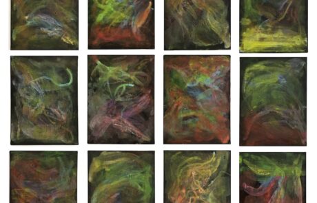 • n. 20 tele (cm24x18 ciascuna) dipinte con colori acrilici e con fondo nero a descrivere l’energia potenziale dell’esistenza che attraversiamo lungo la strada della vita, da cui possiamo lasciarci guidare e a cui possiamo connetterci, come suggerisce la fisica quantistica.